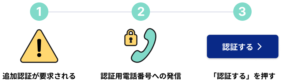 「普段と異なる」と判定された場合には、登録電話番号から認証用電話番号に発信いただき、認証手続きが必要となります。