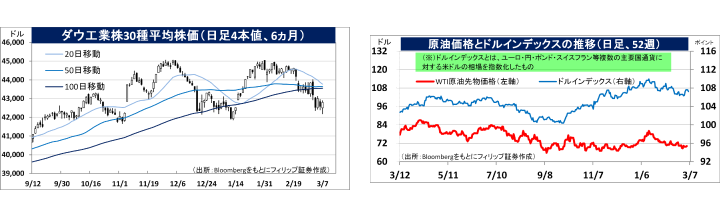 - 同氏は3/7、トランプ政権が成長の基盤を政府支出から民間セクターにシフトさせる中、米経済に何らかの混乱が生じる可能性があると警告。自然な調整として「デトックス期間」と呼んだ。今後、米国株市場にも「デトックス期間」が反映される可能性があるとして、それが短期か長期か、調整幅が浅いか深いかが問題となるだろう。VIX3ヵ月先物価格の3/7終値は22.59と20を上回るものの、現物価格よりも低下。市場は「デトックス」の深刻化を織り込んでいないと考えられる。