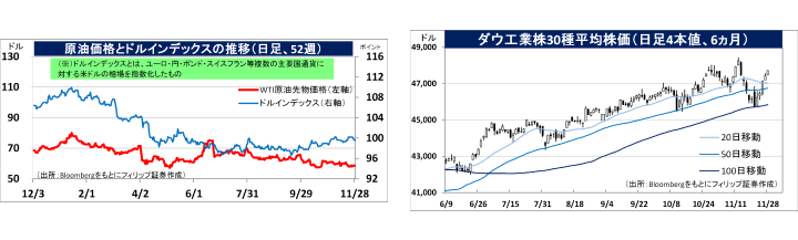 年末の12月相場が始まった。米国は財政年度が10月から始まること、および年末商戦や「サンタクロースラリー」といったお祭りムードとなりやすい季節性もあり、例年、10-12月の3カ月は高く推移しやすい。実際に、2014〜2024年の間のS&P500指数の年末終値は2018年を除いて9月末を上回った。今年はS&P500指数が10/29に史上最高値を付けて11/21まで約5.8%下落した後、米FRB(連邦準備理事会)の利下げ観測の高まりと11月最終週の感謝祭ウィークにおける年末商戦への期待を背景に、11月末終値で史上最高値まで約1%の水準まで戻った。例年通りの年末高で推移するのだろうか?