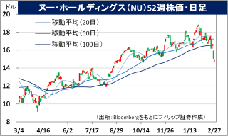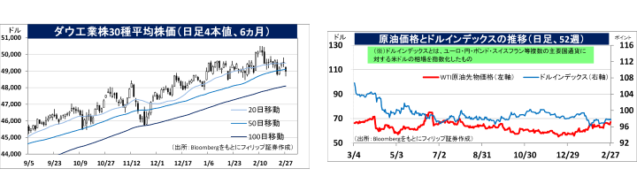 米国とイスラエルが2/28、「イランの核兵器取得を阻止する」としてイランを攻撃した。イラン最高指導者のハメネイ師およびその側近の高官を殺害したと報じられ、イランの現体制に致命的ダメージを与えたものの、原油輸出の要衝であるホルムズ海峡が事実上閉鎖され、攻撃がどこまで長引くのかの見通しは立っていない。原油価格の上昇が懸念されているが、イランの新体制が親米政権となれば、将来的には原油輸出増の要因にもなるだろう。需要面で新たな拡大要因が出てこない限り、原油価格の上昇はそれほど長引かない可能性がある。 当面の米国株の見通しを見ていく上では、イラン情勢よりも重視すべきことがあるように思われる。第1に、2/25に発表された エヌビディア(NVDA)決算に対する市場の反応だ。売上や利益率の実績とガイダンスが市場予想を上回ったにもかかわらず、翌日2/26には株価終値が前日比5.4%安となった。一方で、同じタイミングで発表されたソフトウェア大手 セールスフォース(CRM)の株価は、慎重な通期見通しだったにもかかわらず約4%上昇した。フィラデルフィア半導体株指数(SOX)の週次終値が12/12の7,033ポイントから2/20の8,260ポイントまで約17%上昇し、10週連続の上昇となった。一方で、AI(人工知能)が収益源を侵食すると懸念されたソフトウェア関連企業に関するS&P500ソフトウェア指数は、12/26の8,040ポイントから2/20の6,266ポイントまで約22%下落した。ソフトウェア関連銘柄への悲観論の行き過ぎの見直しと同時に、AI半導体・データセンター関連銘柄の買われ過ぎに伴う調整局面が意識されやすい。 第2に、プライベート・クレジット(ノンバンク融資)問題の顕在化である。英住宅金融会社のマーケット・フィナンシャル・ソリューションズ(MFS)の破綻を契機に、同社へ多額の貸出を実行していた大手銀行や運用会社に加え、BDC(事業開発会社)と呼ばれる投資会社のポートフォリオの健全性に焦点が当たり始めた。一部のアセットの焦げ付きを穴埋めするために、ポートフォリオ内で評価益のある他のアセットを売却するような行動が広がりかねない。 米国株市場全体にも不透明感が高まりつつある。米国株市場のテクニカル指標の一つで、市場急落やクラッシュの可能性を示唆するシグナルとされる「ヒンデンブルグ・オーメン」が1/30以降、2/23までに3回程度発生したことが米国市場関係者の間で話題となっている。株価指数が上昇トレンドを維持する中、高値更新銘柄と安値更新銘柄が同時に多数発生することが、市場の「不健全な分裂」として天井圏における相場の内部的な弱さを示すとみなすのが基本的な考え方である。昨年の10月下旬から11月に複数回発生していた時にはクラッシュは発生しなかったものの、悪材料が重なる中、軽視はできないだろう。(笹木)