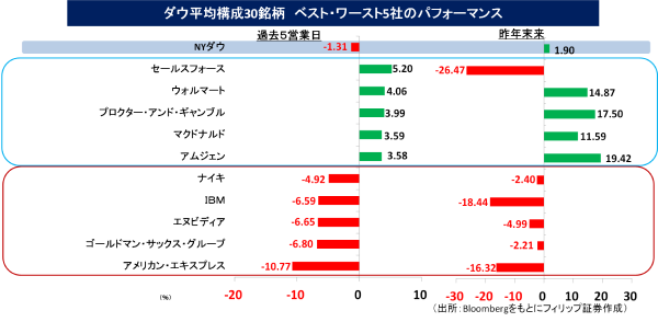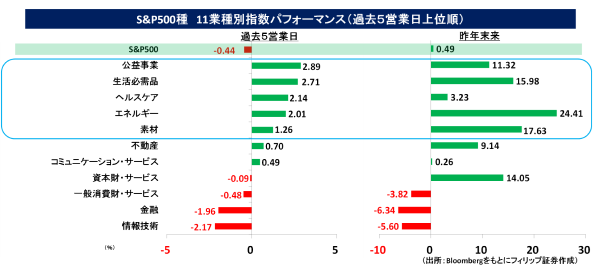 S&P500業種別およびダウ平均構成銘柄騰落率(2/27現在)
