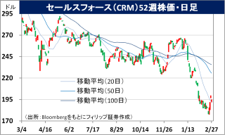 - 2027/1通期会社計画は、売上高が前期比10-11%増の458-462億USD、調整後EPSが同5%増の13.11-13.19USD。エージェント・フォース(明示的な指示を与えなくても自律的にタスクを遂行するAI(人工知能))および「データ360」(顧客データ統合プラットフォーム)の4Qの年換算経常収益(ARR)は前年同期比169%増の8億USD。AIが「SaaS」収益源を奪うという市場の懸念の払拭が見込まれる。