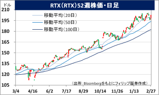 - 2026/12通期会社計画は、既存事業の売上高成長率が前期比5-6%増、調整後EPSが同5-8%増の6.60-6.80USD、フリーキャッシュフローが同4-10%増の82.5-87.5億USD。商業部門と防衛部門の受注残がバランスよく積み上がっていることに加え、トランプ米大統領が今年1月、2027年度国防予算を前期比5割超増加の1.5兆USDとし、「夢の軍隊」を作り上げ、安全保障を強化する構想を公表。