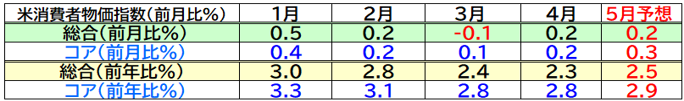 前回4月のCPIは前年比ベースでエネルギーが3.7%下落したことから前年比総合を押し下げたほか、前年比コアは3月から横ばいでしたが、前月比総合/コア、前年比総合はいずれも3月から鈍化しました。こうした点からも4月CPIでは関税政策の影響を確認するには至りませんでしたが、前月比ベースで家電+0.8%上昇、家具+1.5%上昇するなど一部品目で上昇しました。また、衣料品や玩具など、中国からの輸入依存度が高いモノについては在庫で対応したと見られ、価格上昇を抑制しましたが、今後、在庫切れとなれば徐々に価格上昇につながると見込まれています。