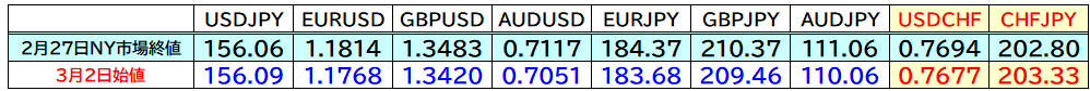2月27日終値と週開け2日始値