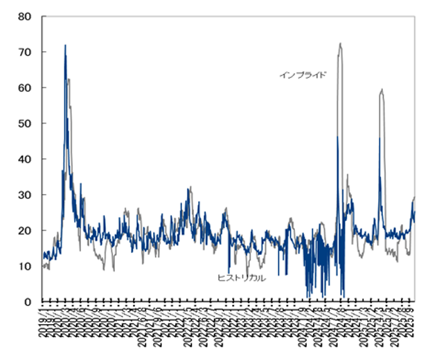 日経平均VIは、急上昇した後に数値が一定のレンジ (20~30程度) に回帰するという特徴を持っています。