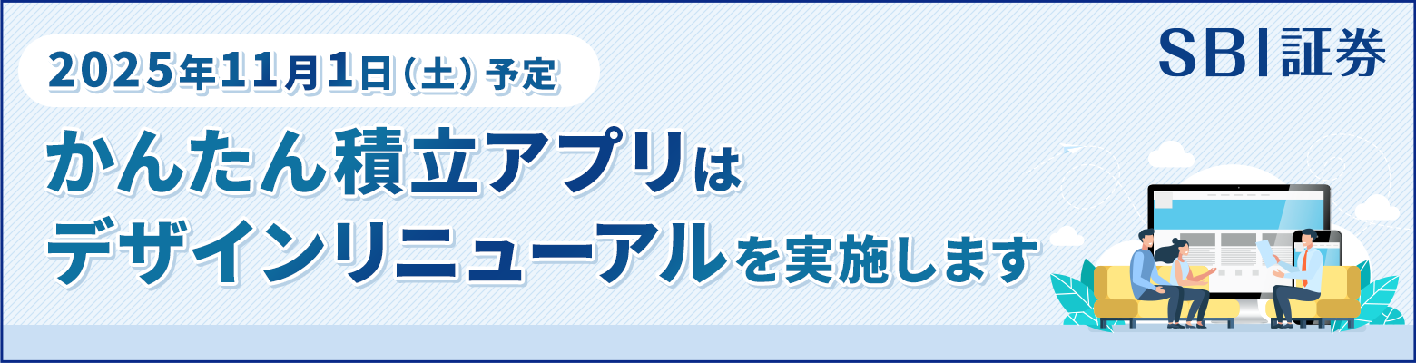 11/1(土)に実施を予定しているメンテナンスで、かんたん積立アプリの画面デザインをリニューアルいたしますので、お知らせいたします。