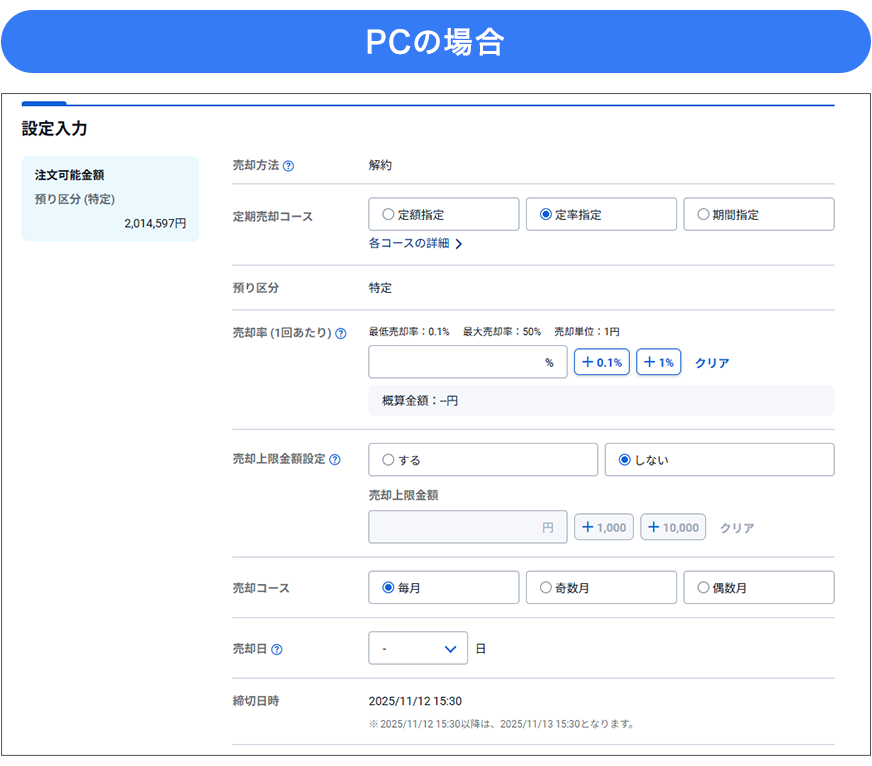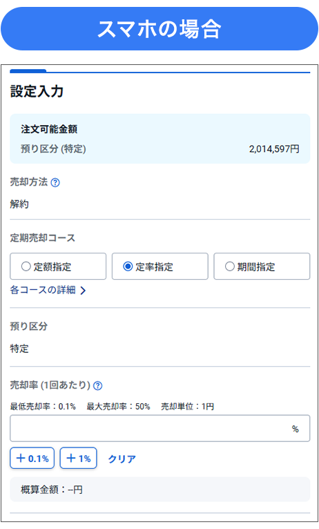 投資信託定期売却サービス設定画面 イメージ