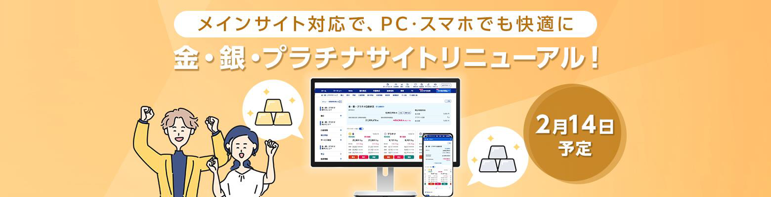 株式会社SBI証券(本社:東京都港区、代表取締役社長:村正人、以下「当社」)は、2026年2月14日(土)夜間より、金・銀・プラチナ取引サイト全面リニューアルを実施しますので、お知らせします。