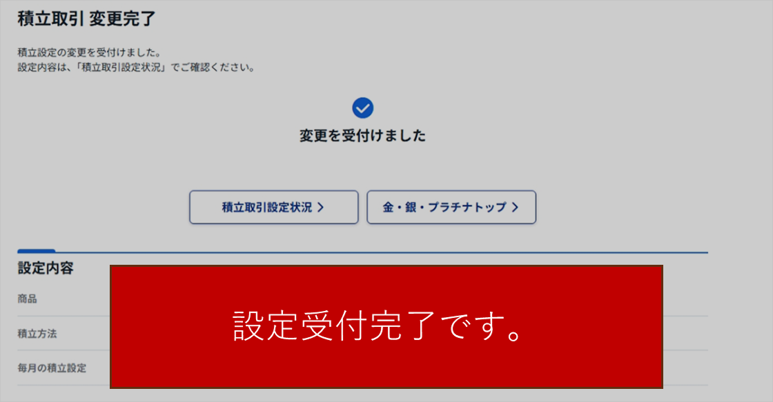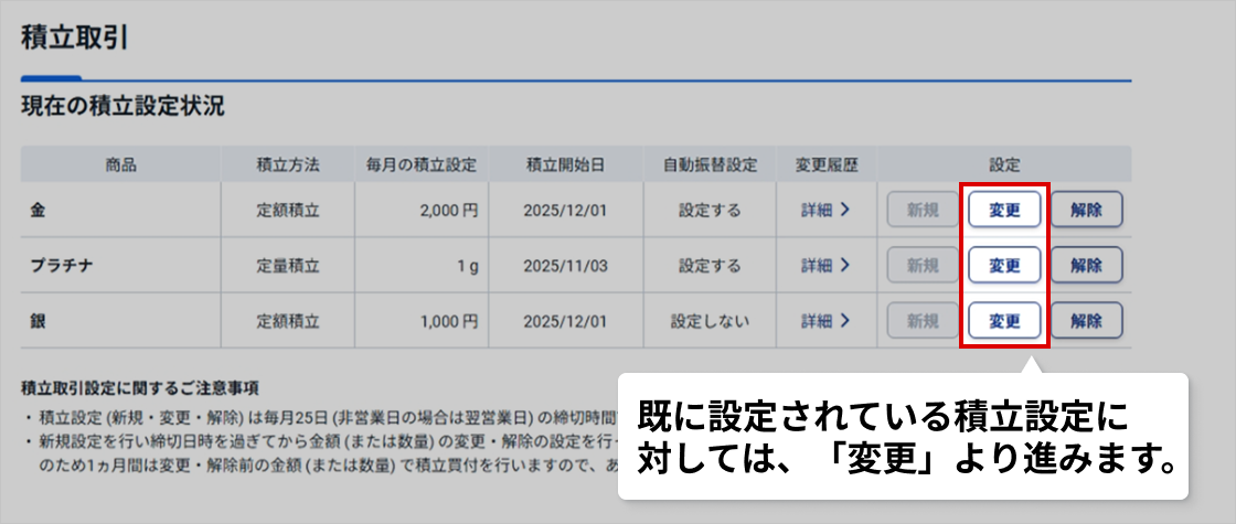 新規設定方法/既存積立設定あり ※積立設定状況画面から設定する方法