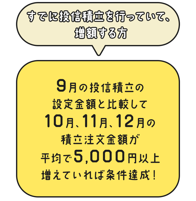 キャンペーン期間中の積立注文金額の月間平均が9月の積立設定金額と比較して、5,000円以上増加