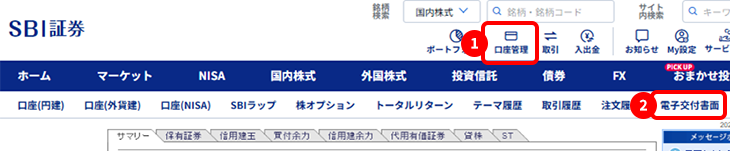 よくあるご質問「電子交付サービス」とは? 「取引報告書」・「取引残高報告書」・「年間取引報告書」・「払出通知書」・「運用報告書」等を書面での交付(郵送)に代えて、WEBサイト上で電子書面(PDFファイル)で閲覧いただけるサービスです。 報告書の管理がよりスムーズ・便利になります。是非、ご利用ください。 電子交付をご利用される場合は、予め「電子交付サービス」の申し込み・ご登録が必要になります。 マイナポータルとのアカウント連携確定申告開始前にマイナポータル利用者登録、アカウント連携等を進めておくとお手続きがスムーズです。 アカウント連携「マイナポータル」と「電子交付サービス(e-私書箱)」をアカウント連携していただくことで、マイナポータル上から電子交付帳票を確認できます。 「マイナポータル」と「e-Tax」をアカウント連携していただくことで、年間取引報告書がe-Taxへ連携され、確定申告の際の入力が簡便になります。 確定申告書に特定口座年間取引報告書等の添付が不要となりました2019年の税制改正により、平成31年(2019年)4月1日以後に提出する確定申告書については、「特定口座年間取引報告書」、「上場株式配当等の支払通知書」等の添付が不要となりました。 確定申告書に添付が不要となった書類