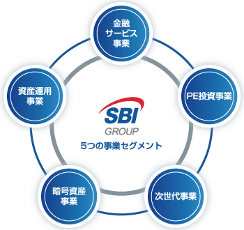 現在は、「金融サービス事業」「PE投資事業」「資産運用事業」「暗号資産事業」「次世代事業」の5事業に変更し「金融を核に 金融を超える」を実現するべく、引き続き先進技術を活用した商品・サービスの提供や新たなビジネスの創出に向け注力していきます。