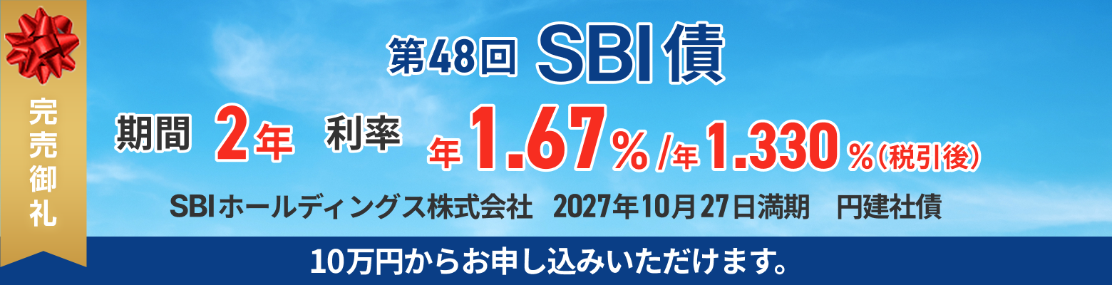 第48回SBI債※11.67%本債券は10万円以上10万円単位で買付可能です。