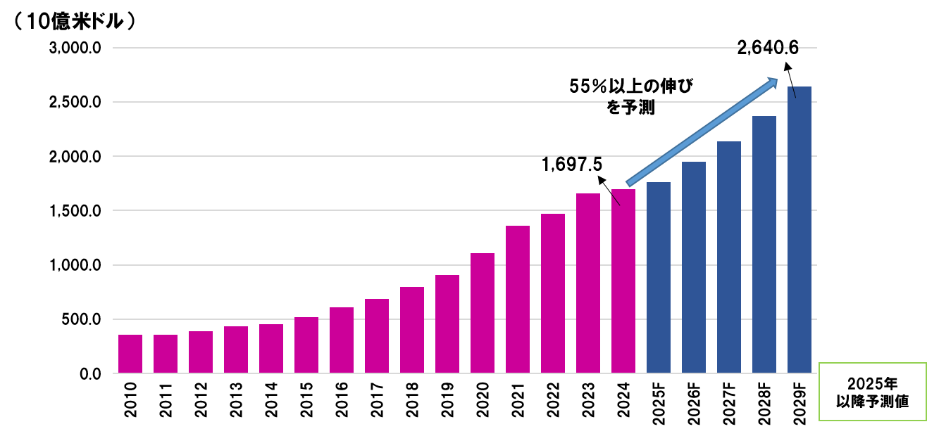 - 出所:Preqin(2025年3月からBlackRockの100%子会社で、オルタナティブ資産業界向け金融データ・情報提供のリーディングカンパニー)