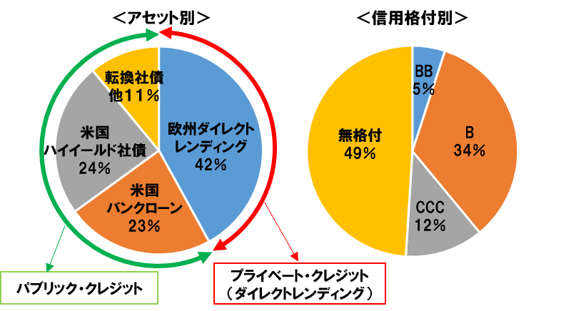 - パブリック・クレジット投資 ⇒ 当ファンドにおいては、欧米のバンクローン、ハイイールド社債、転換社債・ハイブリッド債などへの投資をいいます。
