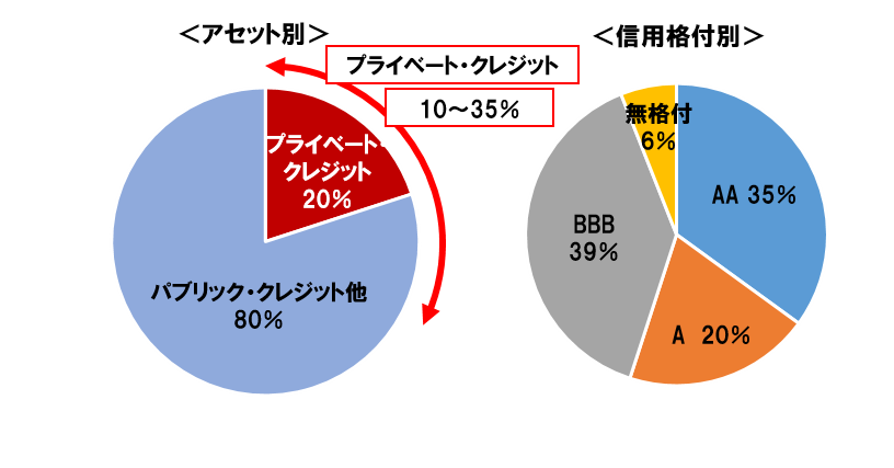 - 各アセット、信用格付別分布の割合については、投資対象ファンドの運用会社の判断により変更になります。
