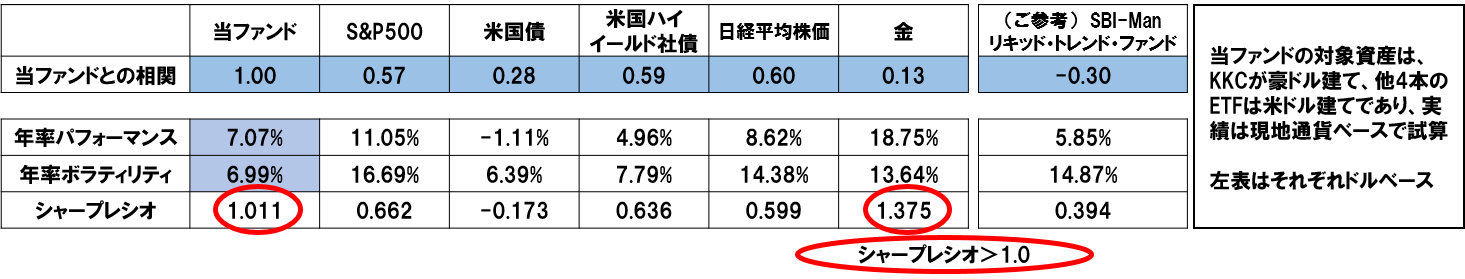 当ファンドのシャープレシオ、及び相関係数については、PRIVの運用期間が数カ月間と短いため、残り4ファンドの実績で計測