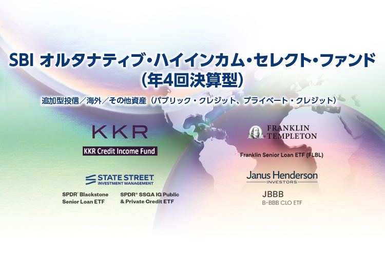 欧米のパブリック・クレジット、プライベート・クレジットを投資対象とするハイインカムファンド、「SBI オルタナティブ・ハイインカム・セレクト・ファンド(年4回決算型)」(以下「当ファンド」)が登場!流動性を考慮したポートフォリオを構築することで、毎日の設定・解約を可能に。インカムゲインの獲得と長期的な信託財産の成長を目指した運用を行います。