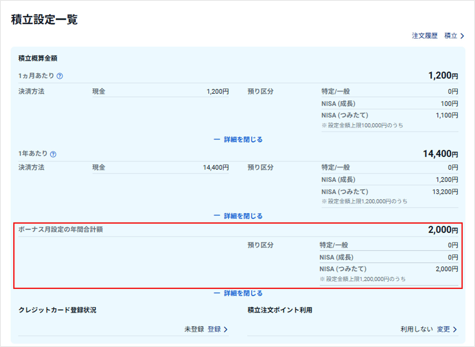 NISAつみたて投資枠利用時の「ボーナス月設定」の仕様変更および「積立設定一覧」画面への表示追加のご案内