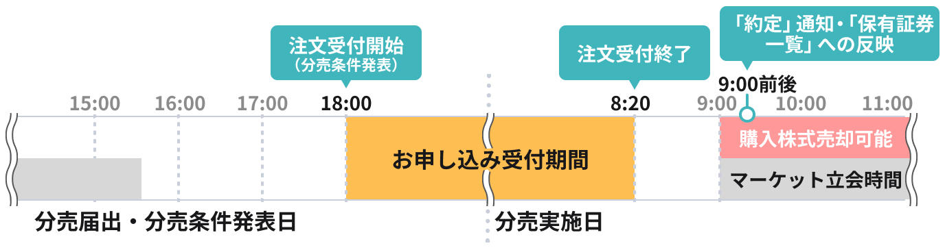 - 分売条件の決定は15:30(引け後)〜18:00の間にWEBサイトに掲載いたします。