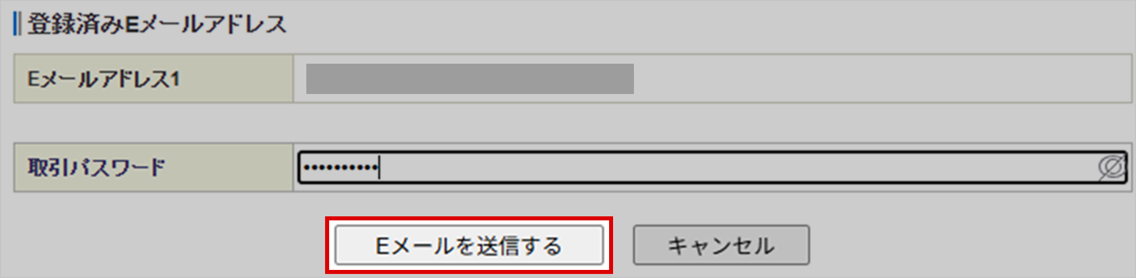 3-2次に、取引パスワードを入力し、「Eメールを送信する」をクリックします。