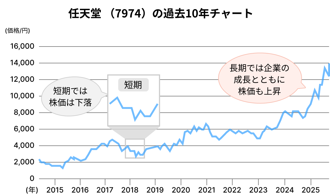 たとえば、有名企業の株価を10年、20年といった長い期間で見てみると、景気の波や一時的な下落があっても、全体として右肩上がりに成長していることが多くあります。これは、企業が「新商品の開発」や「海外市場への進出」などに積極的に取り組むことで、長期的かつ着実に成長していることを示しています。