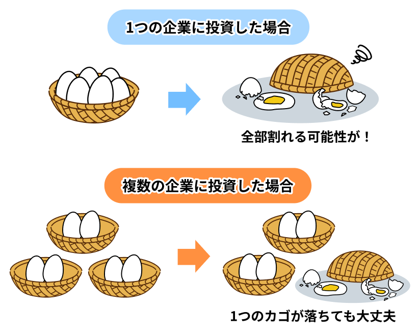 投資も同じで、1社の株だけに投資すると、その会社の業績次第で大きく損をするかもしれません。