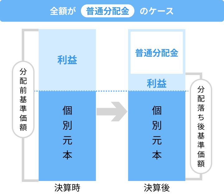 運用で得た利益の中から分配金が支払われるため、すべて普通分配金になります。