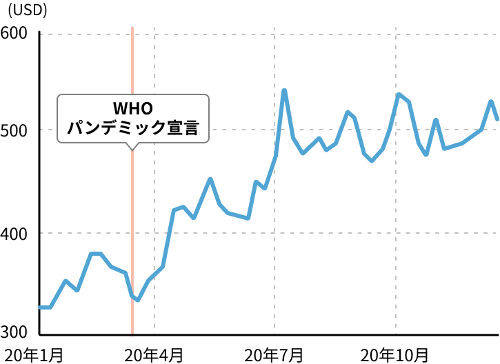 2020年、新型コロナウィルスの感染拡大により、世界中の株式相場は一時的に大きく下落しました。しかしその一方で、巣ごもり需要による利用拡大でオンラインサービスの株価は大きく上昇しました。社会の変化や新しいニーズによって、株価は思いがけない動きを見せることもあります。