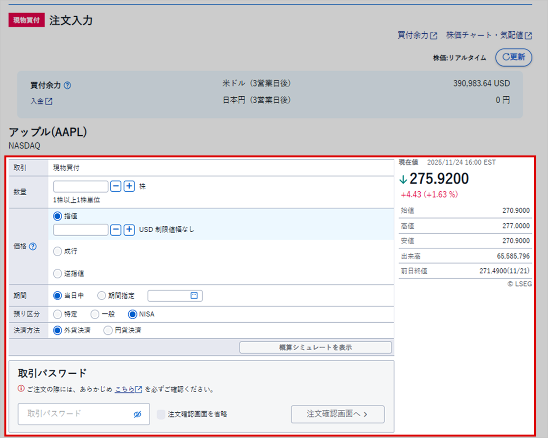 現物買付の手順