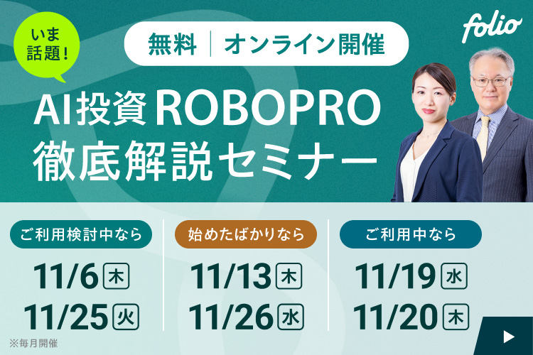 - SBI証券のセミナーでは、セミナーでご紹介する商品等の勧誘を行うことがあります。これらの商品等へのご投資には、各商品毎に所定の手数料等をご負担いただく場合があります。また、各商品等には価格の変動等による損失を生じるおそれがあります。商品毎に手数料等およびリスクは異なりますので、当該商品等の契約締結前交付書面や目論見書またはお客さま向け資料をよくお読みください。