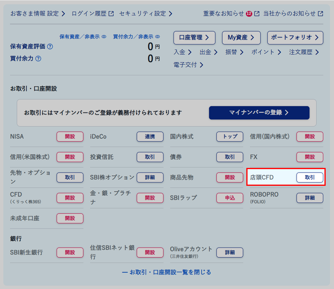 店頭CFD(SBI CFD)お取引に関する重要なお知らせ