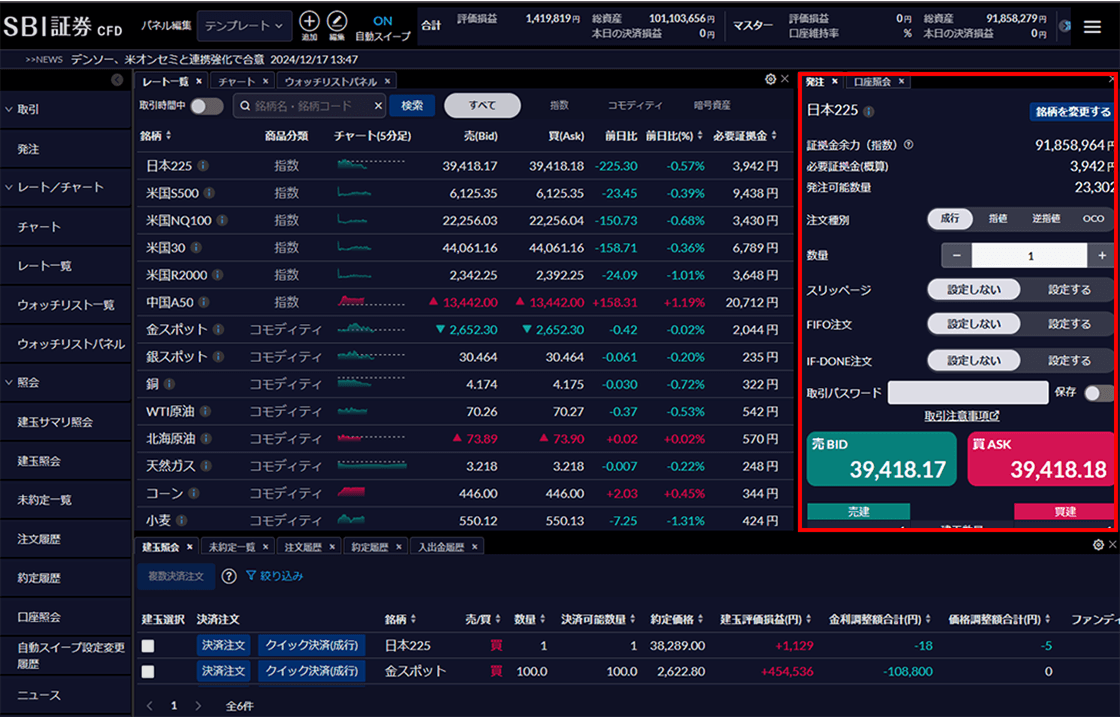 店頭CFD取引サイトの発注画面からお取引いただけます。