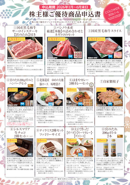 ご利用の際には、こちらの「株主優待情報に関する注意事項等」を必ずご確認ください。