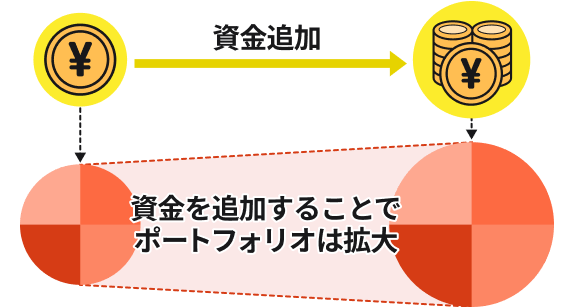 投資による資産の増加に加えて、特に若い世代の方は、新たに資金を追加しながら、ポートフォリオ全体を大きくしていくことも大切です。