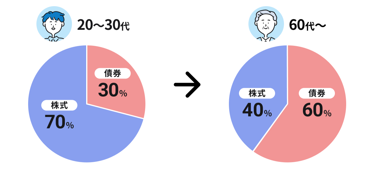 基本的には若い方がリスク許容度が高いため、ライフステージの変化によって投資配分を検討する