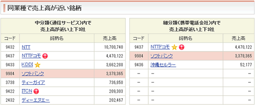 ⇒「同業種で売上高が近い銘柄」でチェック!