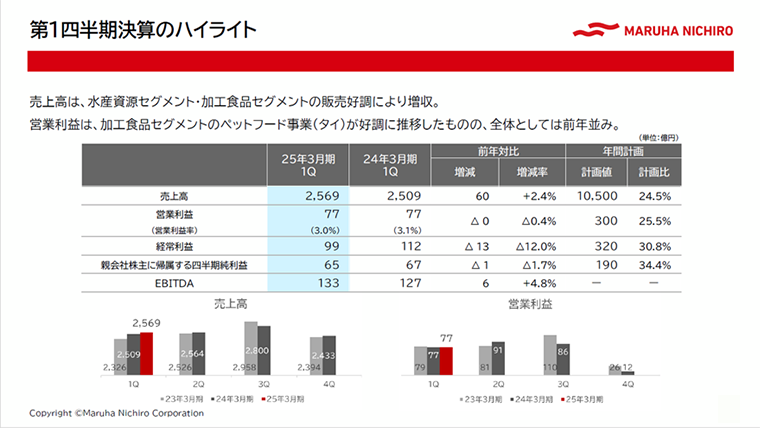- ※マルハニチロ株式会社2025年3月期第1四半期決算短信補足資料(P.3,4,12)より引用