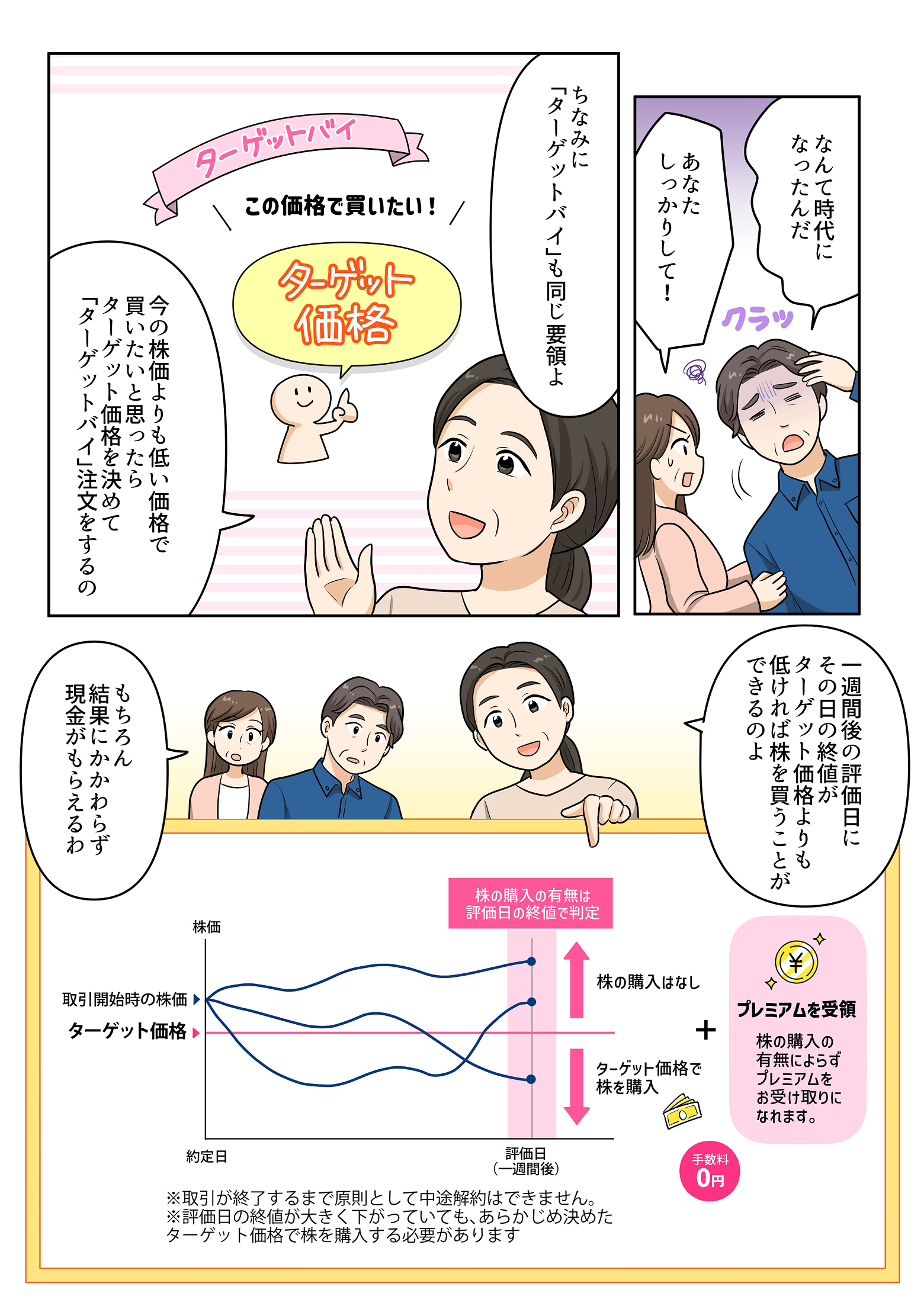 株式投資をしながら現金を受け取ることができる「ターゲットバイ・ターゲットセル」。塩漬け株から利回りを得られるという画期的な投資手法に、夫婦も満足なご様子。