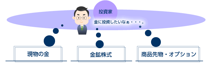 実は、金のネックレス、金貨、金メダルのような宝飾品や、金地金への現物直接投資でもなく、先物でもない、「金」への投資方法があります!