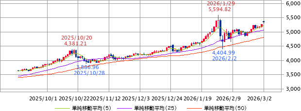 2月23日の週のニューヨーク金市場は、トランプ米政権の関税政策に対する不透明感やイラン情勢に対する懸念を受けて買い優勢となった。中心限月となる4月限は1月30日以来の高値5,299.0ドルを付けた。米国とイランの3回目の核開発協議が実施され、継続することで合意したが、米大統領は不満を示した。米大統領は一般教書演説でイランに言及し、世界最大のテロ支援国が核兵器を所有することは許さないと述べた。