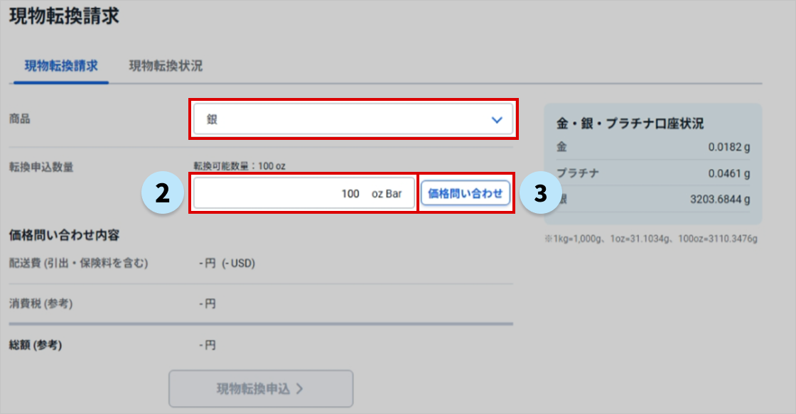 金・銀・プラチナ > 現物転換請求