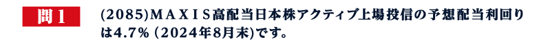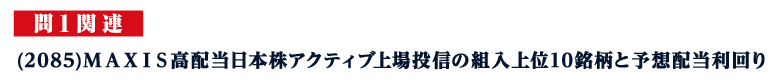(2085)MAXIS高配当日本株アクティブ上場投信は、わが国の株式を主要投資対象とし、東京証券取引所に上場する大型株・中型株の中から、予想配当利回りの上位銘柄を選定します。