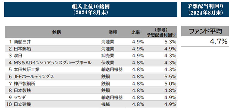 当ファンドの予想配当利回りは、ファンド平均で4.7%と相対的に高い利回り水準にあります。(2024年8月末)