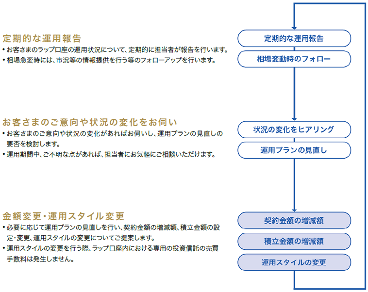 「SBIラップ×」のお申し込みの受付、ご契約後のフォローアップは、SBI証券と業務委託契約を締結している金融商品仲介業者等を通じてご提供します。