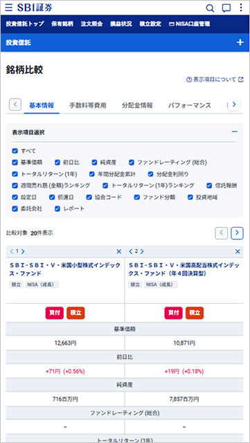 新サイトにも銘柄比較の画面をご用意しました。