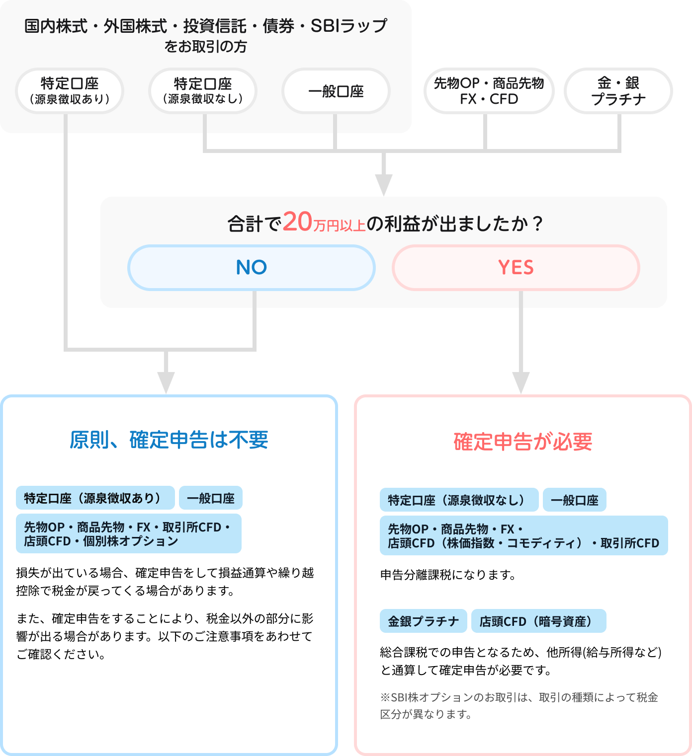 • 取引口座の種類によって確定申告要・不要等が異なります。
