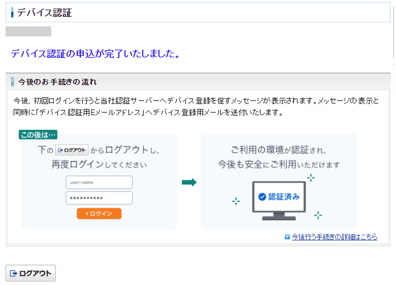 - デバイス認証の端末登録には有効期限がございます。有効期限が切れた際は、お手数ですが再登録をお願いいたします。
