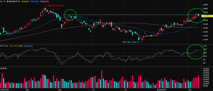 チャート形状が「まだ上昇?」の出来高が多い5銘柄分析